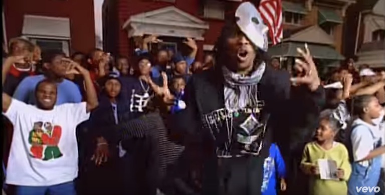 A fanciful scarf and a Jason hockey mask even though he’s not a deranged psychopathic killer (assumedly), this is our one hipster for this music video. Also, I see you in the back with the ultimate urban fashion marker, the negro cartoon shirt.